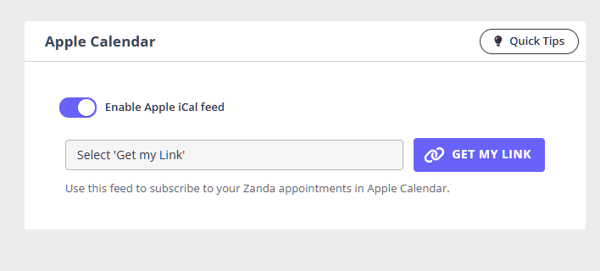 - With the Enable Apple iCal feed toggle on, click GET MY LINK.
