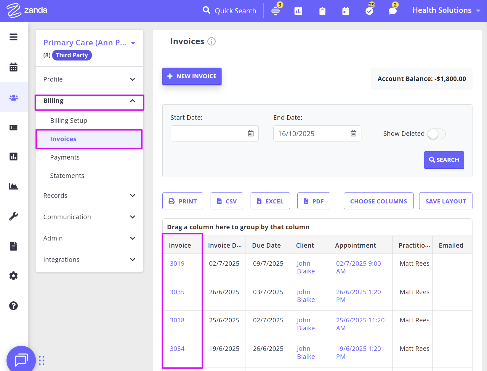 If you want to view invoices from all the third parties in your account (or one), here’s how you can do that: