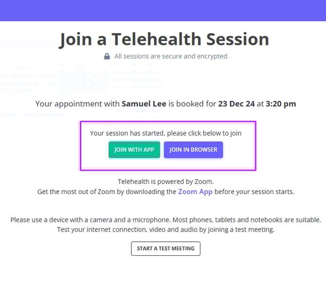 Joining a Telehealth Session as a Client