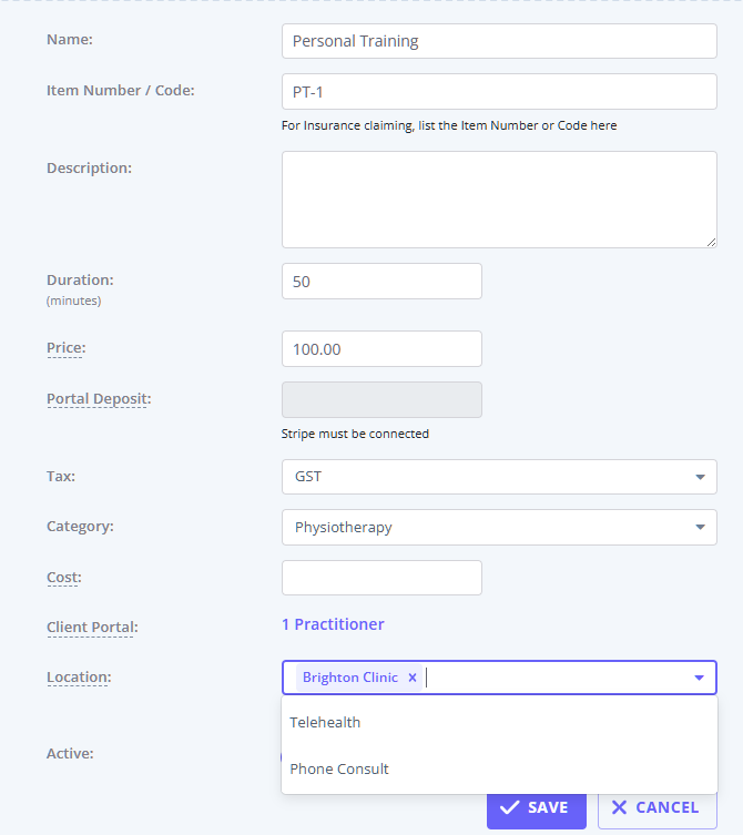 - Please note that these services should also be made available for online bookings on the relevant practitioners profiles to show on the client portal.