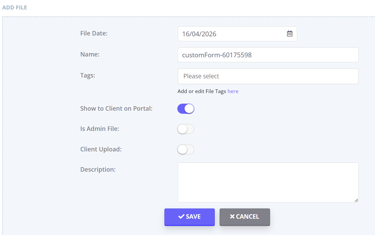 - ON → File is visible to the client under Your Documents
