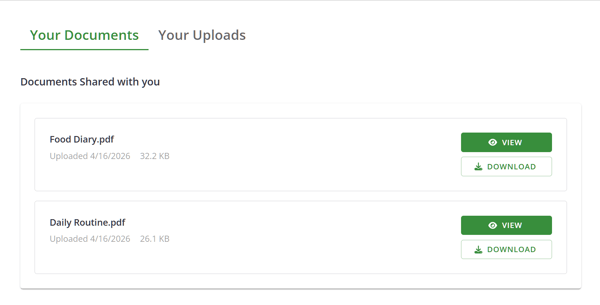 Your documents folder will show documents shared with a client by their practitioner.
