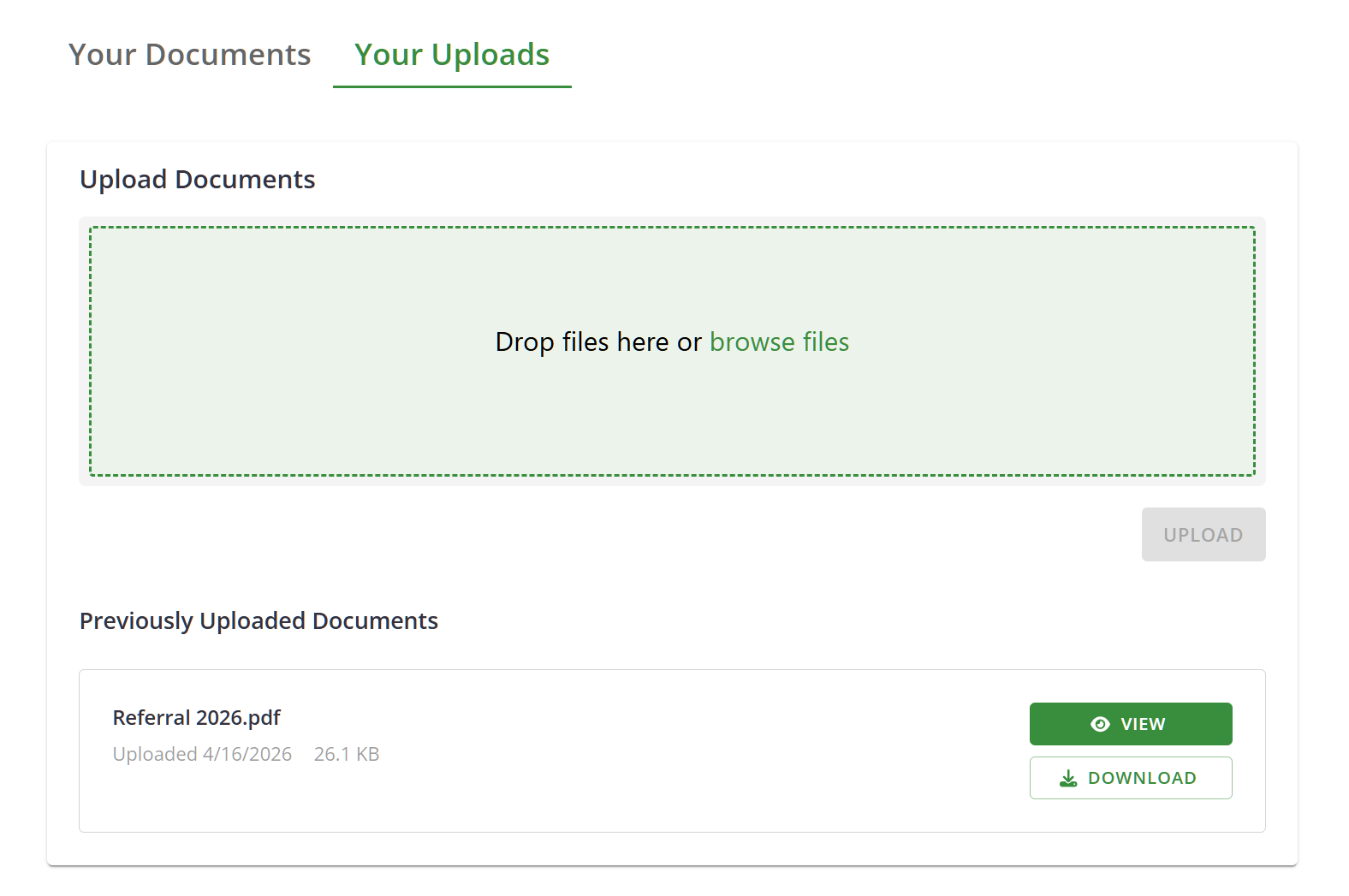 - Upload their own documents via the portal