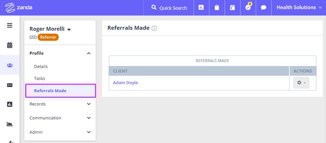 The Referrer Profile is organized in a way similar to the Client Profile. It consists of four sections: Profile, Records, Communication and Admin. Here is a brief overview of each of these sections: