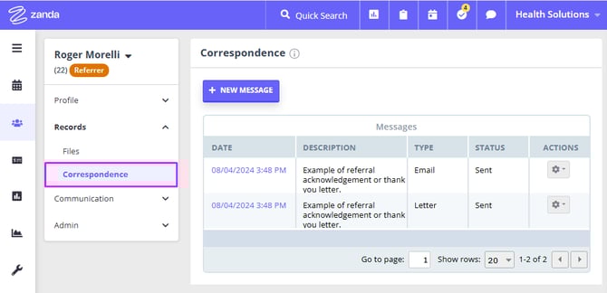 The Correspondence tab will permanently store all your communication with the referrer (emails, SMS and letters), with a few exceptions, as explained here.
