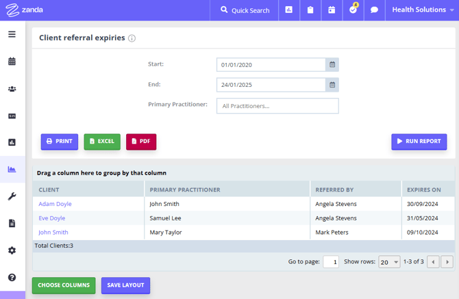 1. Go to Reports > Clients > Referral Expiry.