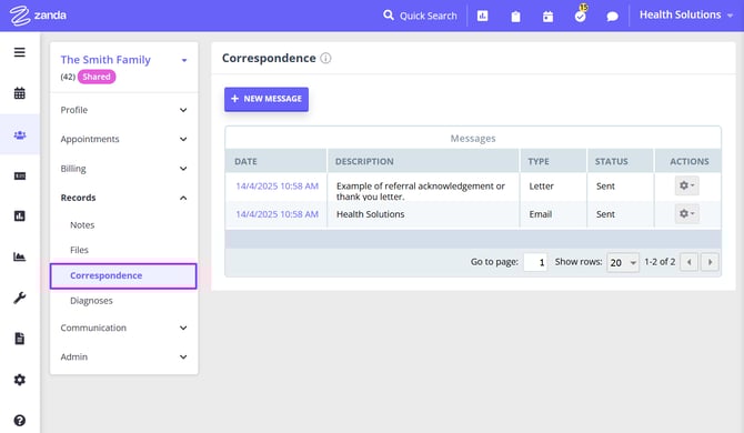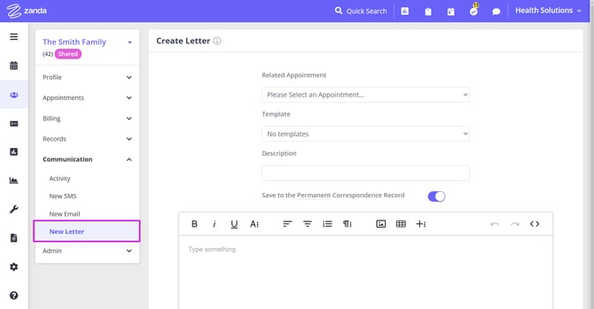 - New Letter - create a new Letter to email to a selected recipient (client, referrer, etc.)