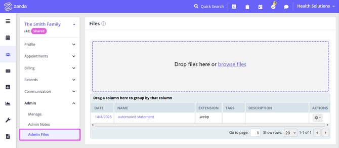 - The Admin Files - this is a list of files uploaded for this client