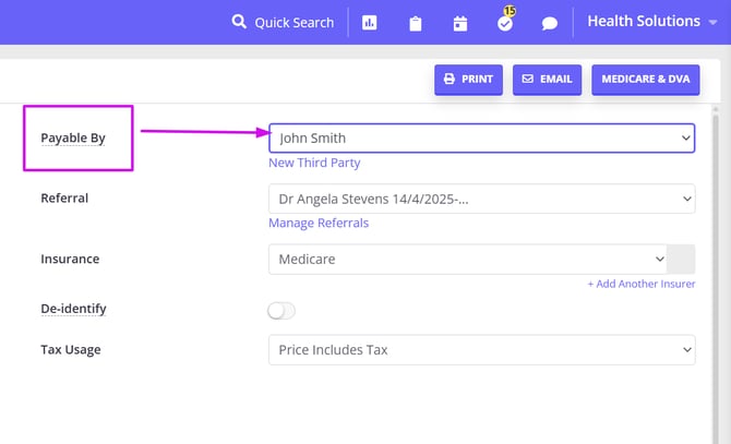 - You can set a different default payee in the Shared Details > Billing > Billing Setup page.