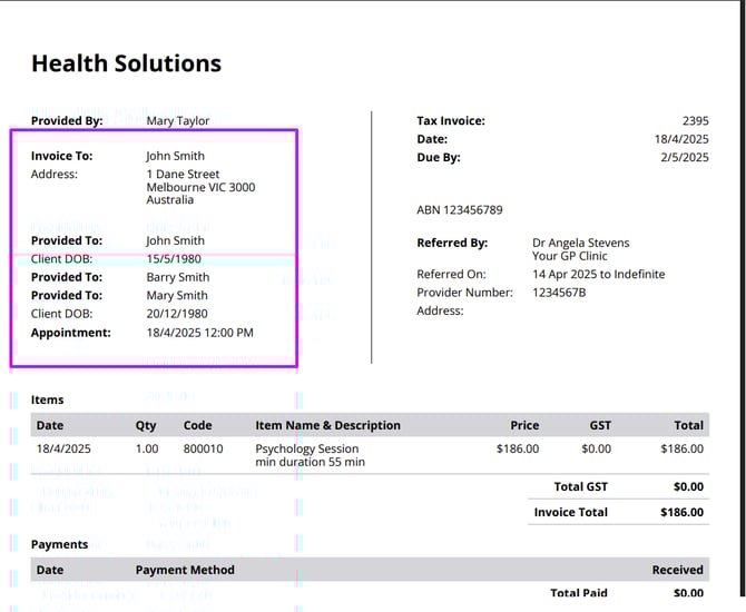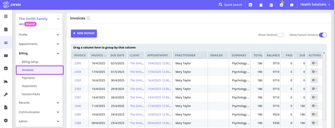 3. A member of the shared profile will be able to see invoices billed to them (if they are a self-paying individual client, and a default payee member of a shared profile):