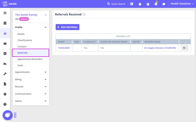 - Use the Referrals page to add referrals to the shared profile.