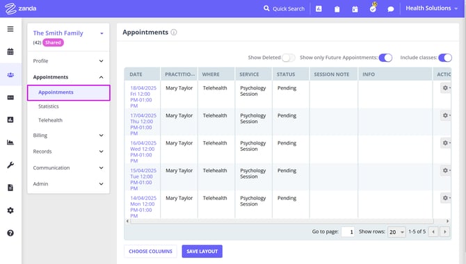 4. A member of the shared profile will be able to see a list of future-dated appointments scheduled for them as a individual client and for their shared profile(s):