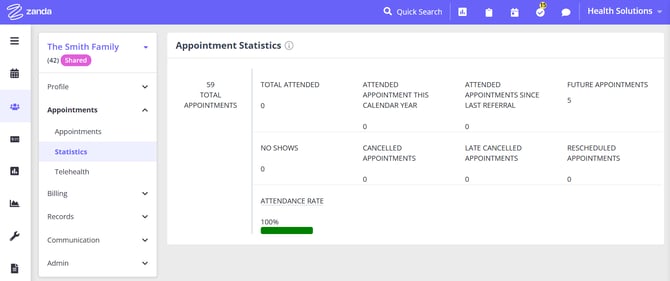 - Statistics - Summary information about their appointment history