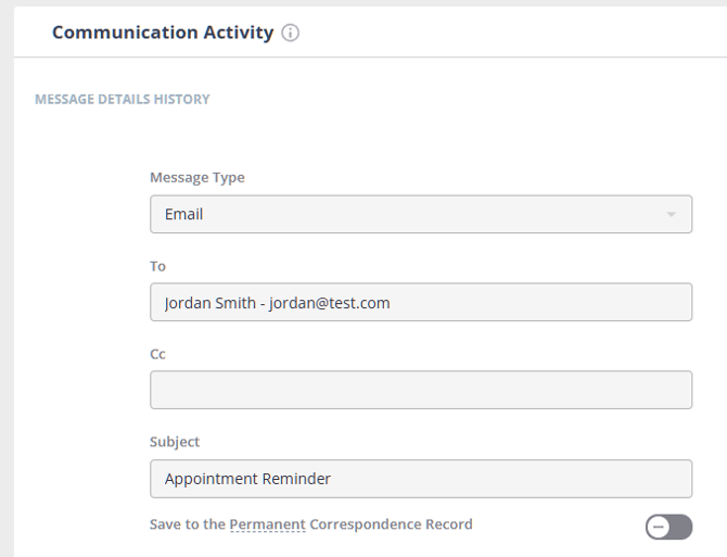 - Activity - all sent and received communication within the last twelve months. If you would like to store communication for longer than this period please select the 'Save to the Permanent Correspondence Record' option when adding or editing communication.