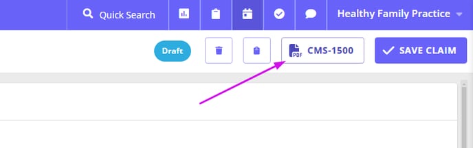 3. Click 'CMS-1500' button at the top-right of the claim page.