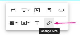 Note: The recommended dimensions of images are: Width: no greater than 800px; Height: auto. To resize the image, click on it and choose the 'Change Size' icon from the image toolbar: