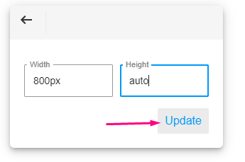 Enter the recommended dimensions and save by hitting 'Update':