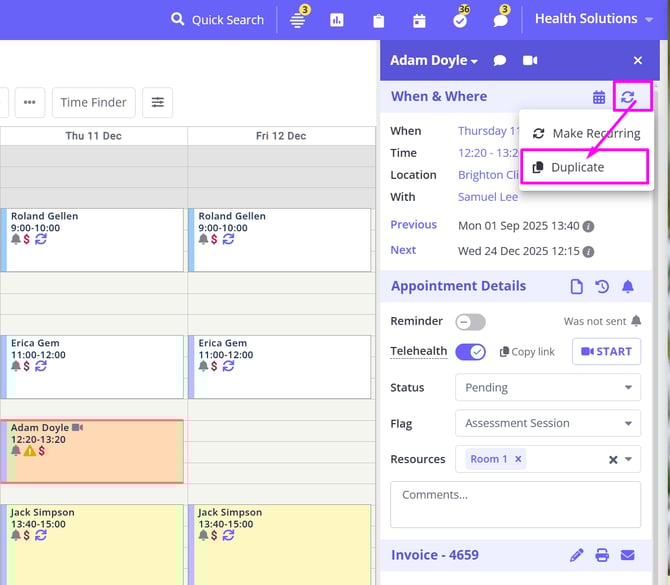 ✅ Duplicate client, personal, or group appointments in just a few clicks, with built-in clash and availability checks