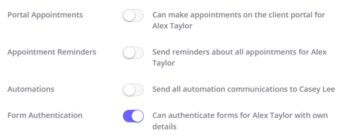 ✅ A new toggle is now available on each contact profile linked to a client, allowing you to enable that contact to authenticate forms using their own email address or phone number.
