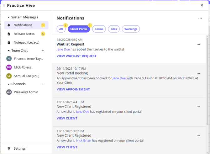 ☑️ Client Portal Waitlist Notifications in Practice Hive