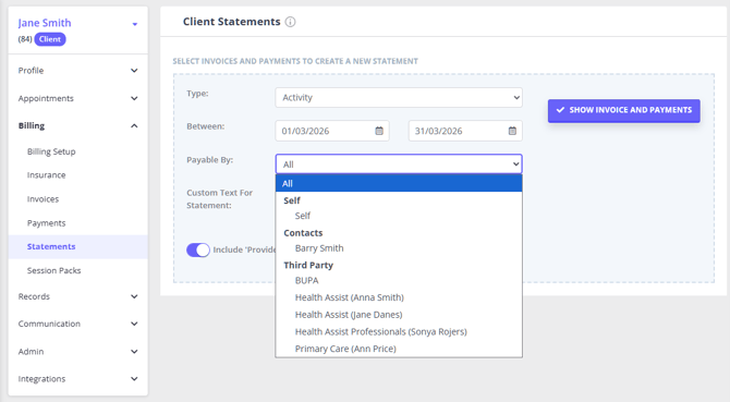 We’ve enhanced the way statements are generated from client profiles by introducing Payable By filtering.