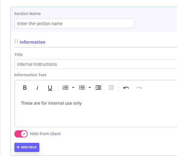 ☑️ Hide from Client Switch on Form Fields
