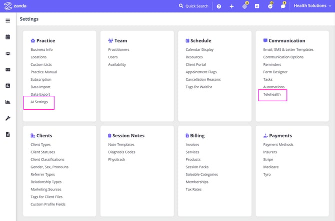- Practice: AI Settings → opens the Optional Add-Ons page with the focus on BizzyAI settings