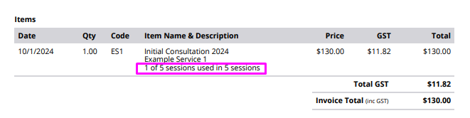 This specific line cannot be hidden or removed from the invoice if you are using the session pack feature. It is a core system function designed to provide transparency to both the practitioner and the client regarding the pack's remaining balance.
