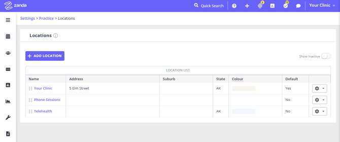 - Go to your locations list in User Menu > Account Settings > Practice > Locations. You’ll see all active locations listed.
