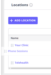 - Each location row has a drag / move icon on the left.