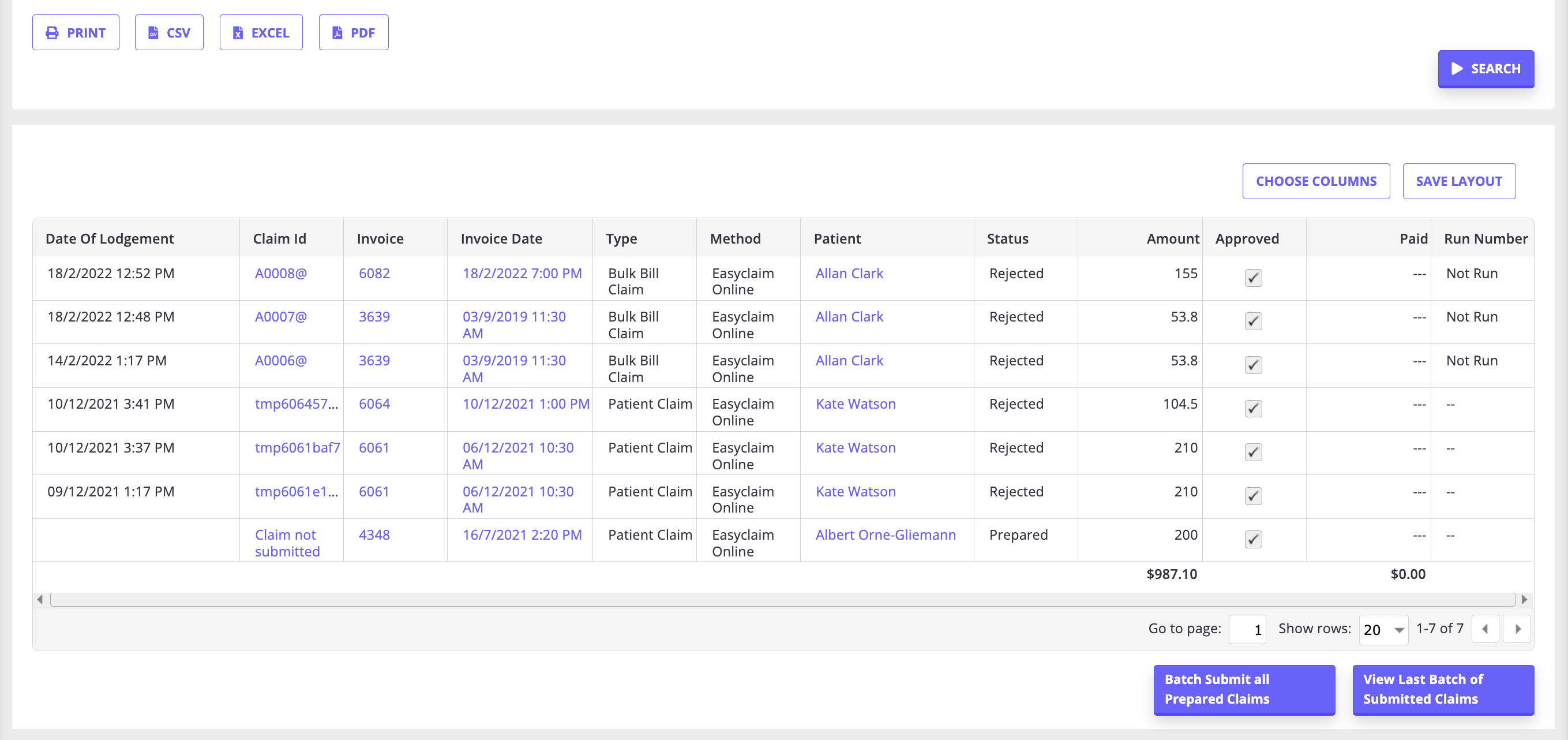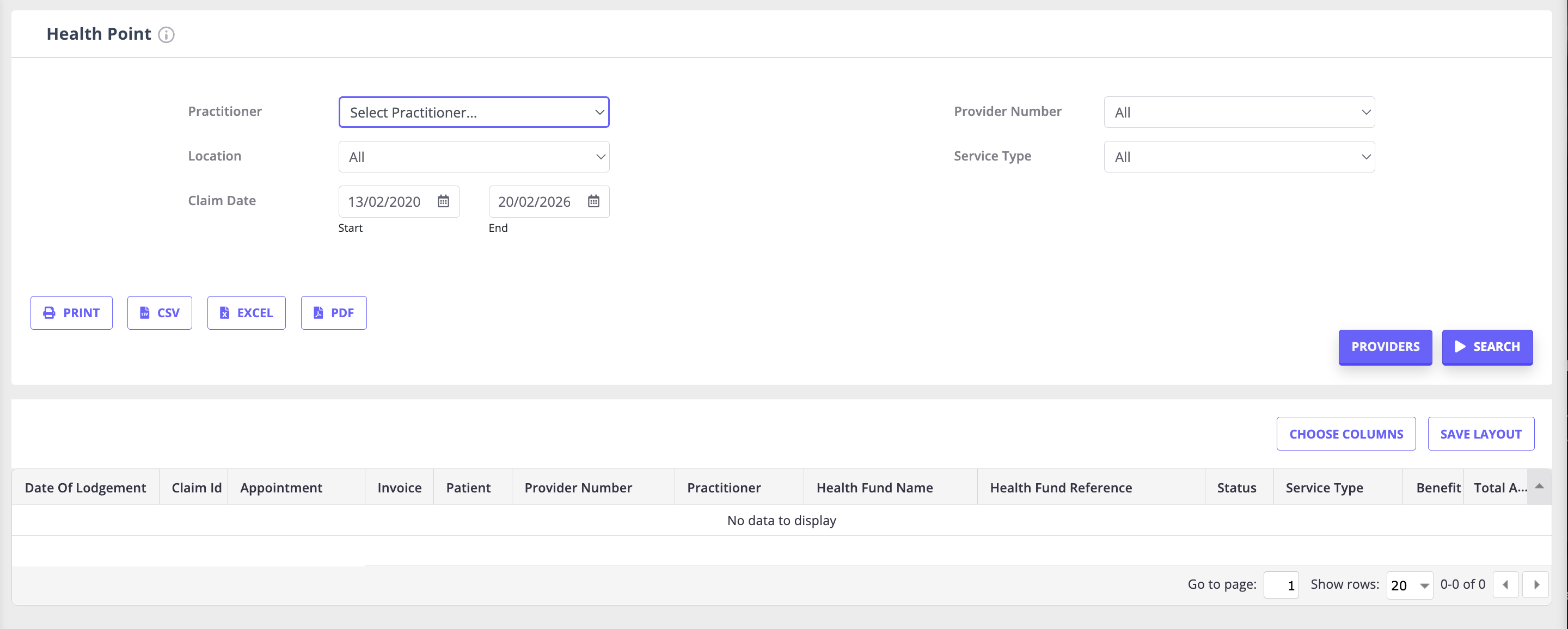 - The generated list will contain all the relevant information about a claim, including client name, invoice number and date of the appointment the claim was made for, provider name and number, health fund name and reference, claim status and service type, and the benefit amount and the total amount.