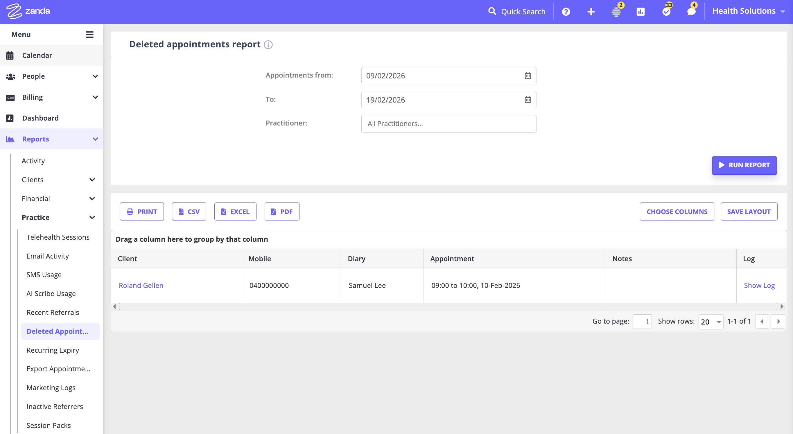 - Finding a deleted appointment from the Deleted Appointments report