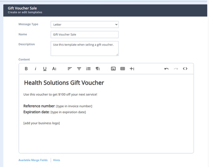 - In the letter content, adjust the price if needed, add the invoice number as a reference number, and the expiration date for this voucher.