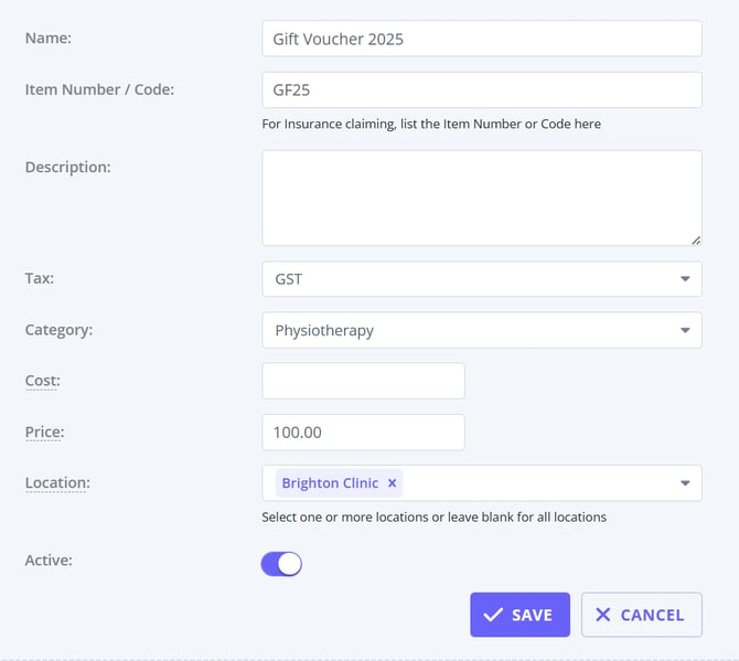 1. In Settings > Billing > Products, create a new Product. Name it 'Gift Voucher' or 'Gift Certificate', select the applicable Tax rate and the Price. Save the changes.