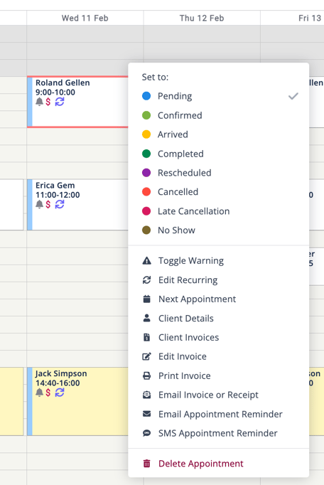 - Locate the appointment for which you wish to send a reminder, then right-click on it.