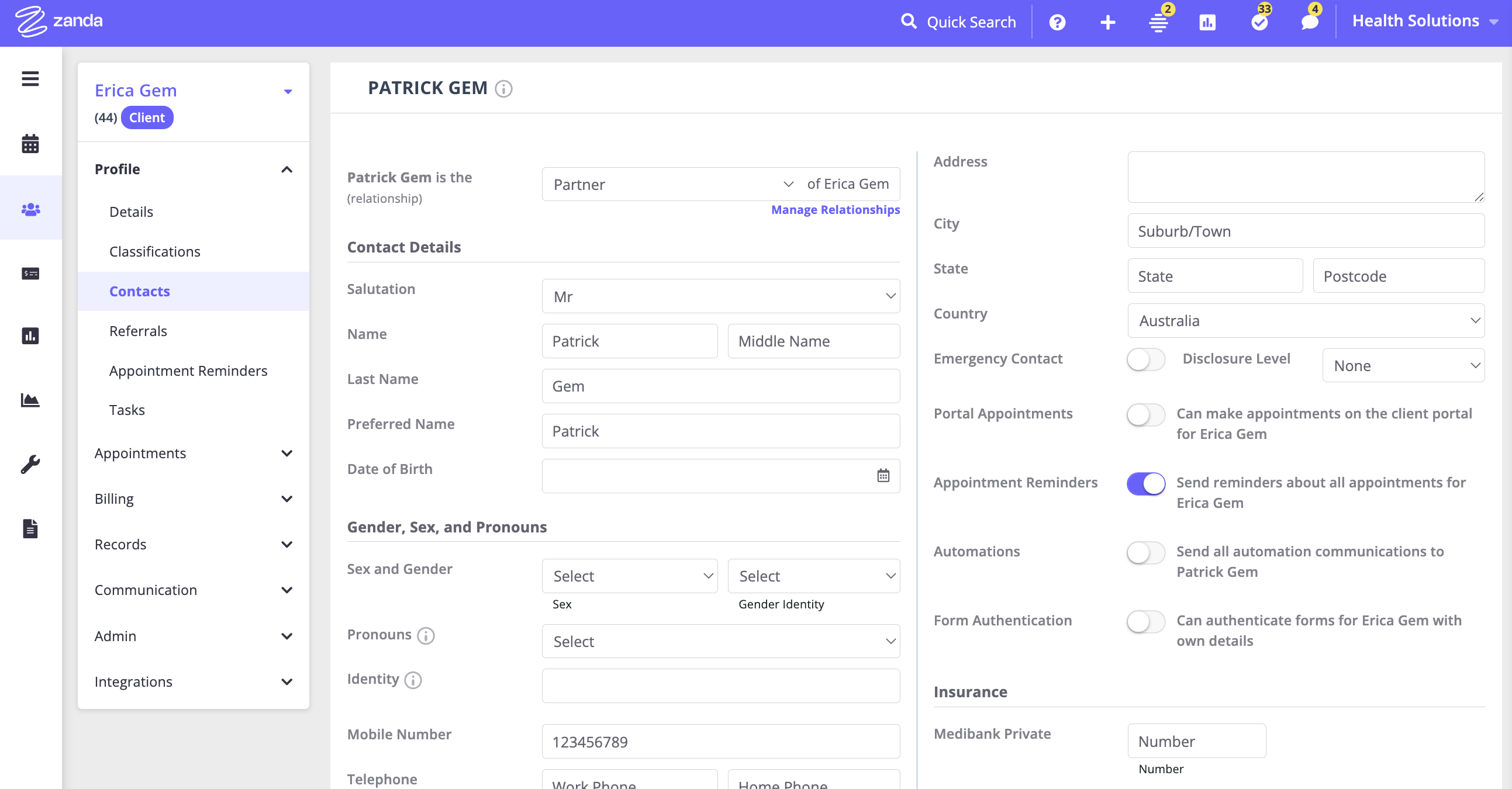 - Option 3: If automatic SMS or email appointment reminders are enabled, and the client does not have a mobile number or email address saved in their profile but their contact does, the reminder will be sent to the contact.