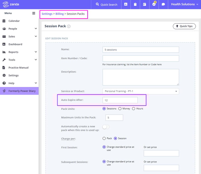 Learn how to set up Session Pack expiry and auto-creation in Zanda. Manage packs efficiently with our guide on handling expired or fully used packs.