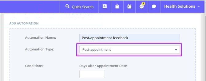 - Select the 'Post-Appointment' Automation Type.