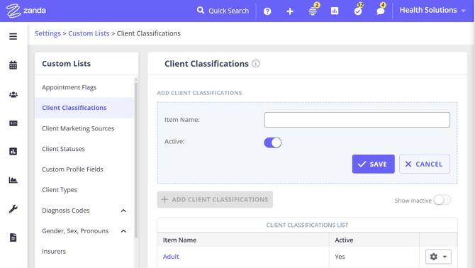 - Setting Up Client Classifications