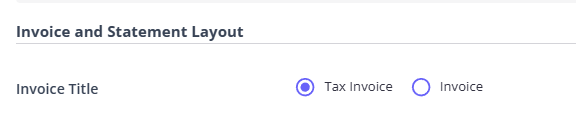 - Select the relevant Invoice Title: Tax Invoice or Invoice