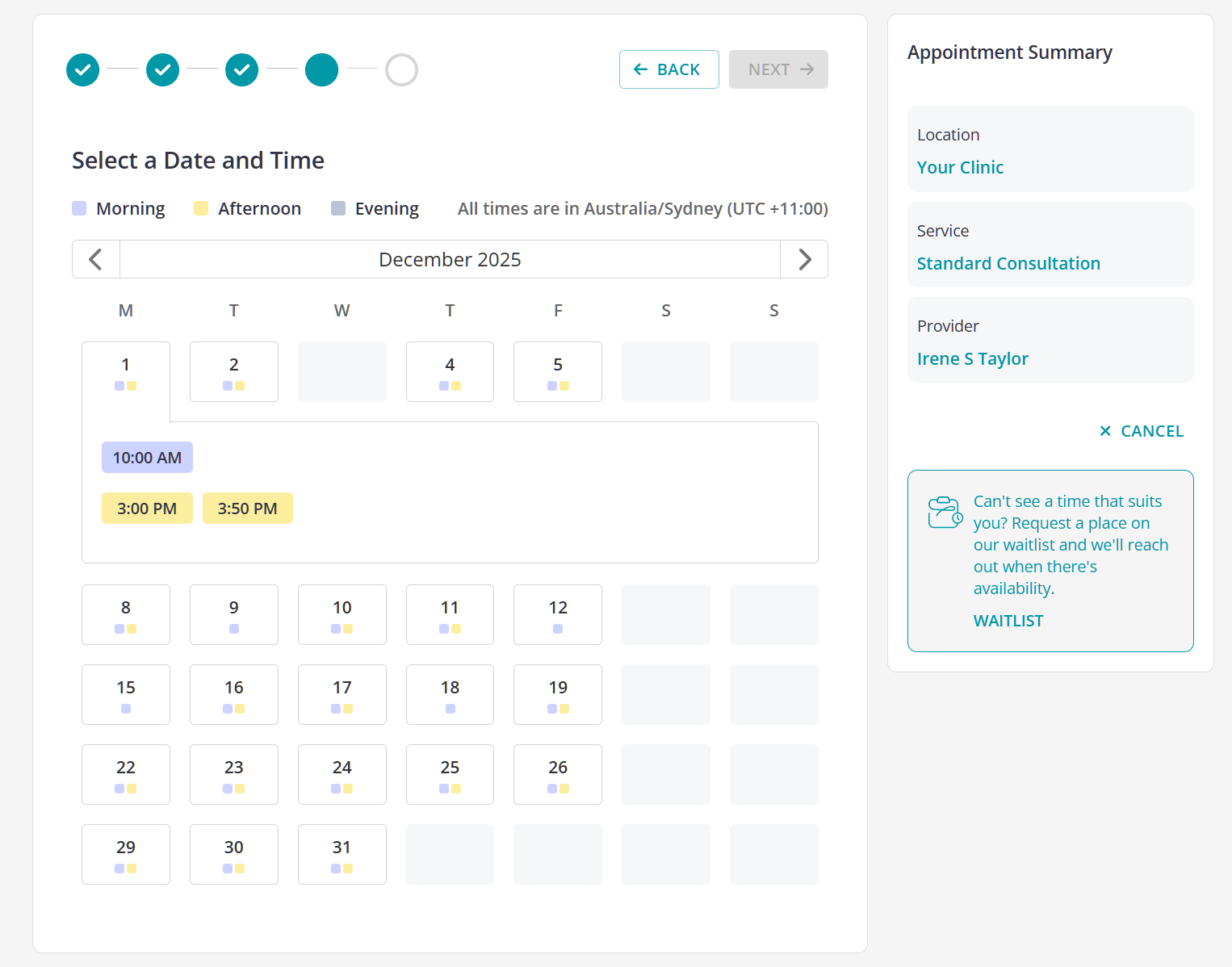 - There are some other ways to limit practitioners' availability on the client portal for one-off cases, such as public holidays, annual or sick leave, etc. See our detailed guide about managing availability tips and tricks here.