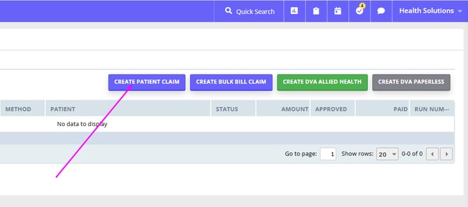 - Select: ‘Create Patient Claim’
