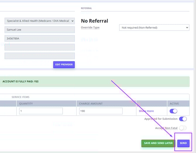 - Before sending a patient claim please ensure that you have read and followed the steps outlined in our support article on generating Medicare receipts. This will ensure that the invoice has all of the required information linked before the claim is sent.