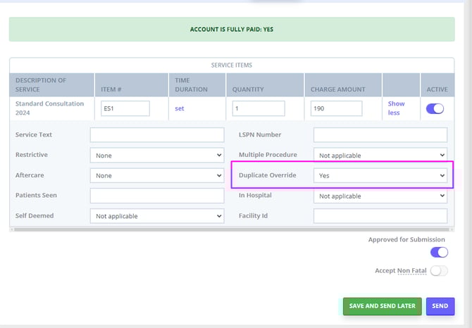 When submitting a patient claim, there is the ability to enable "duplicate override"