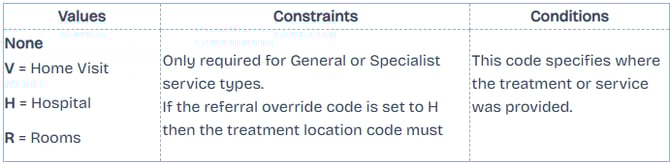 Only applicable for DVA Medical Paperless claims. In the majority of situations, R will be selected, indicating rooms (such as your practice).