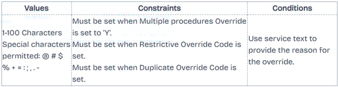 This code is used to allow payment for services where the account provides indication that the service is not restrictive with another service within the same claim or on the patient history.
