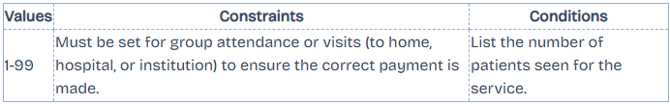 Only applicable for DVA Medical Paperless claims. List the number of patients seen for the service.