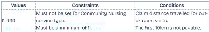 Indicates travelling distances involved in a home, nursing home, or hospital visit.