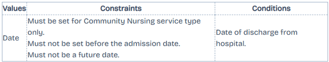 Only applicable for DVA Allied Health claims. The date the patient was discharged from hospital.
