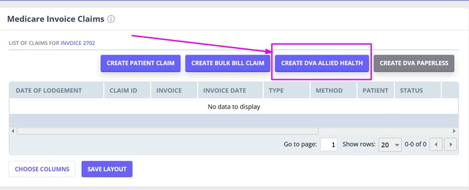 - Select either Create DVA Allied Health (for allied health, community nursing, psych, and speech pathology) or Create DVA Paperless (for specialists and GPs) depending on which type of claim you would like to submit.